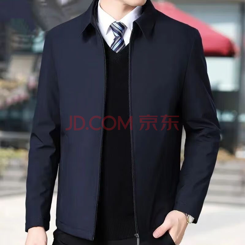 【夹克棉服】高档男士商务休闲棉服夹克保暖经典翻领棉衣 藏青色((99元)