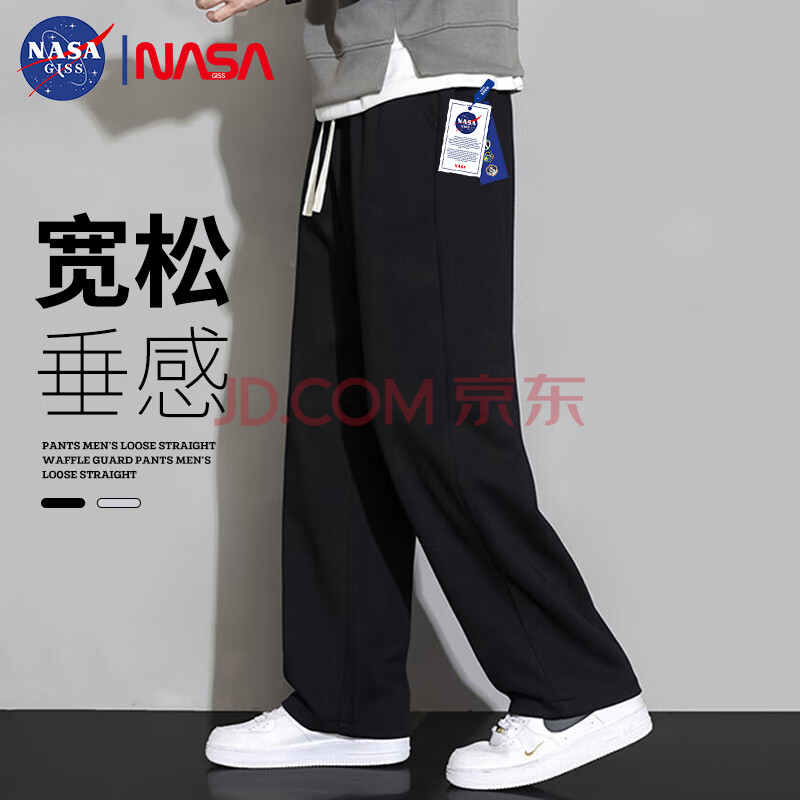 NASA GISS休闲裤男宽松直筒阔腿裤潮流长裤子 黑色直筒常规 (180/8(49元)