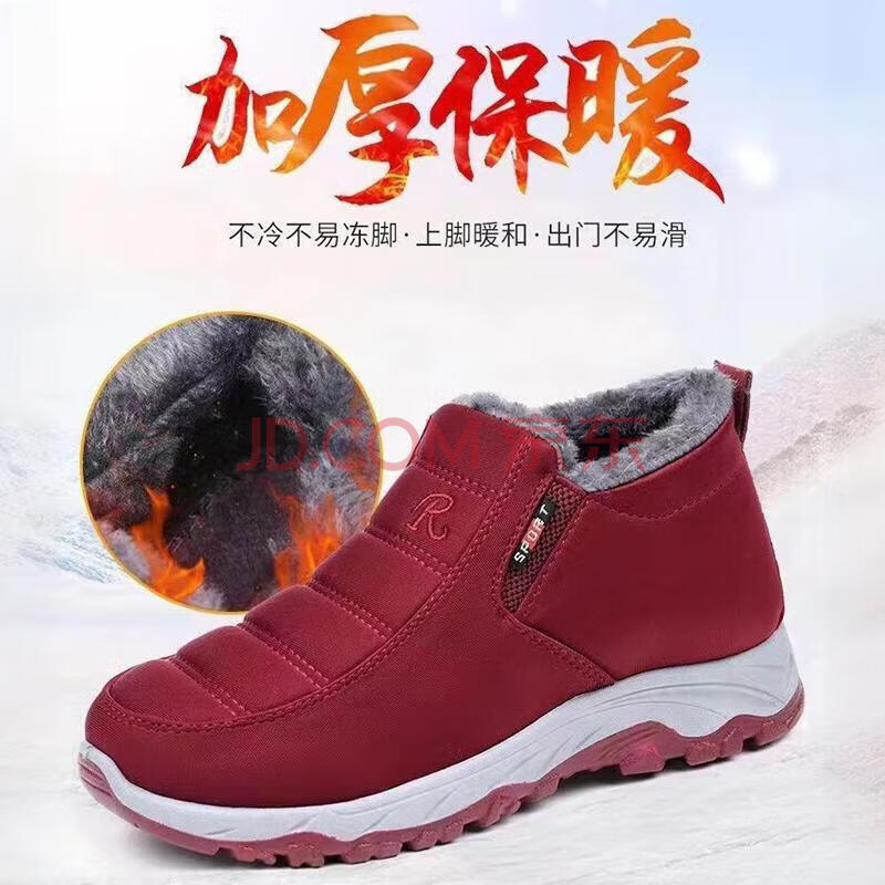 FOOTOPPO加绒棉鞋女老年妈妈鞋冬季中老年舒适鞋子冬天老人加厚保暖(59元)