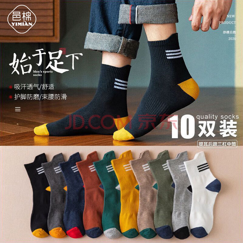 邑棉袜子男提耳中筒袜吸汗透气男袜撞色潮流运动风长筒长袜秋冬季1(19.9元)