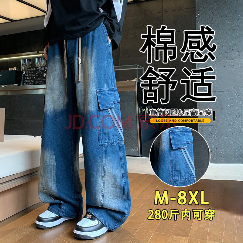头号青年牛仔裤男秋冬季潮流擦色大码男装直筒宽松工装休闲裤子男 (94元)