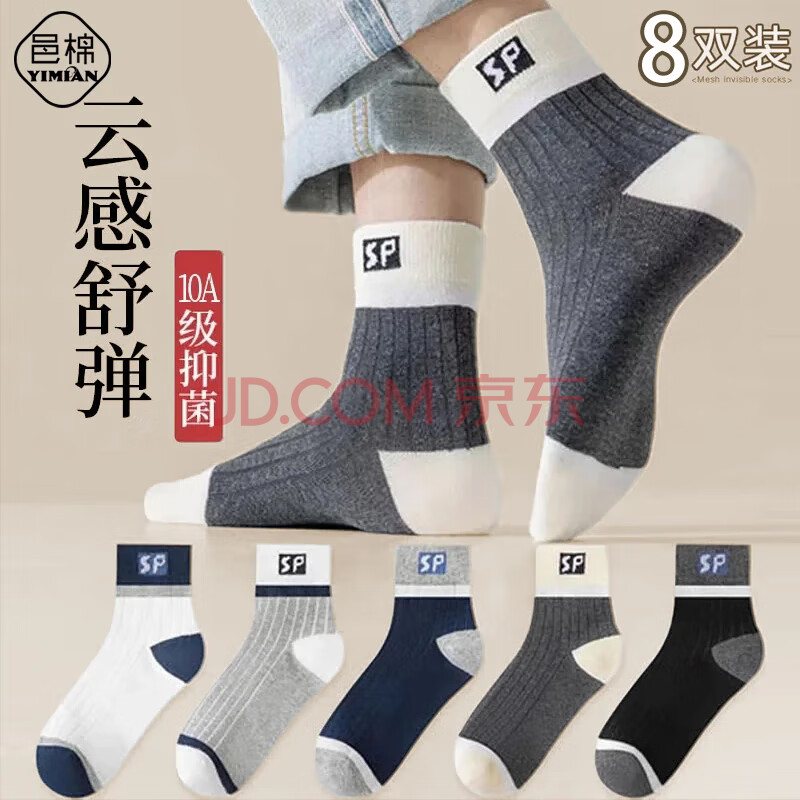 邑棉袜子男士中筒袜秋冬季吸汗透气男袜长筒长袜运动风潮流休闲8双(17.9元)