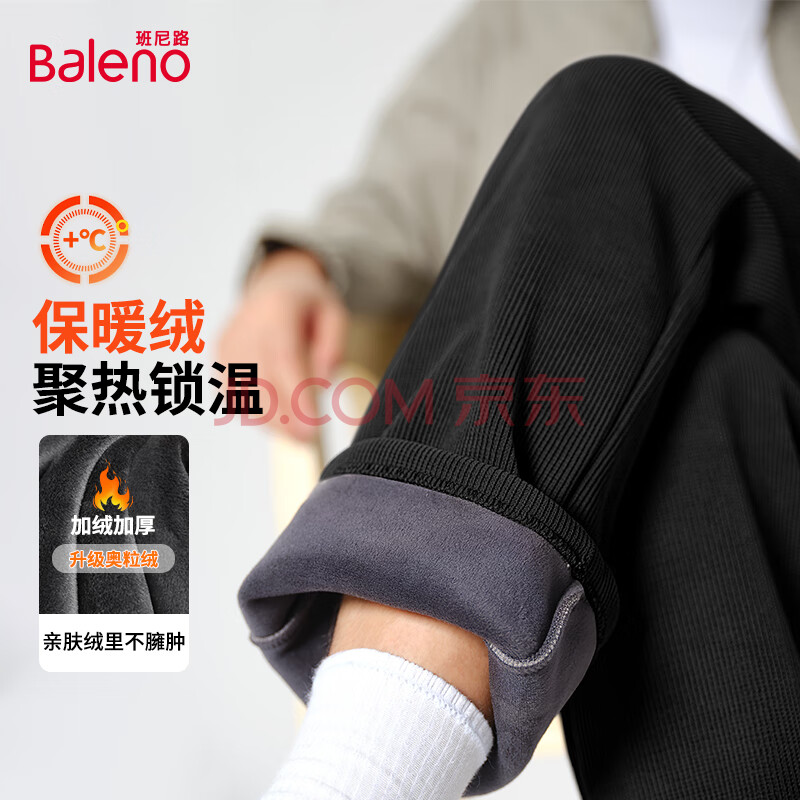 班尼路(Baleno)雪尼尔休闲裤男冬季加绒户外男士直筒裤港风潮流纯(79元)