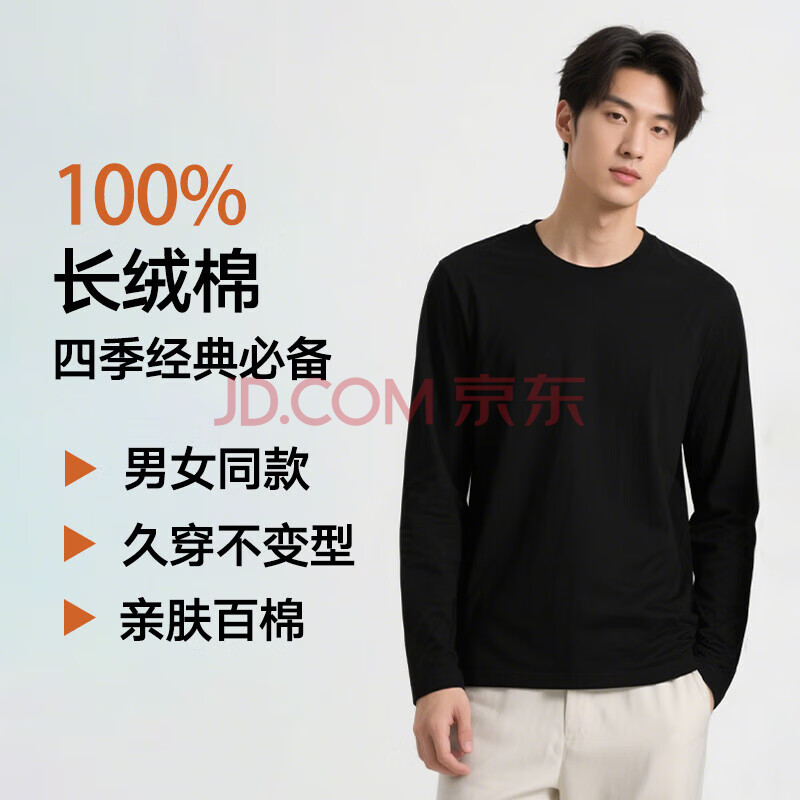 心程悦纯棉百搭T恤秋冬内搭2025新疆长绒棉打底衫男女同款长袖T恤 (69元)