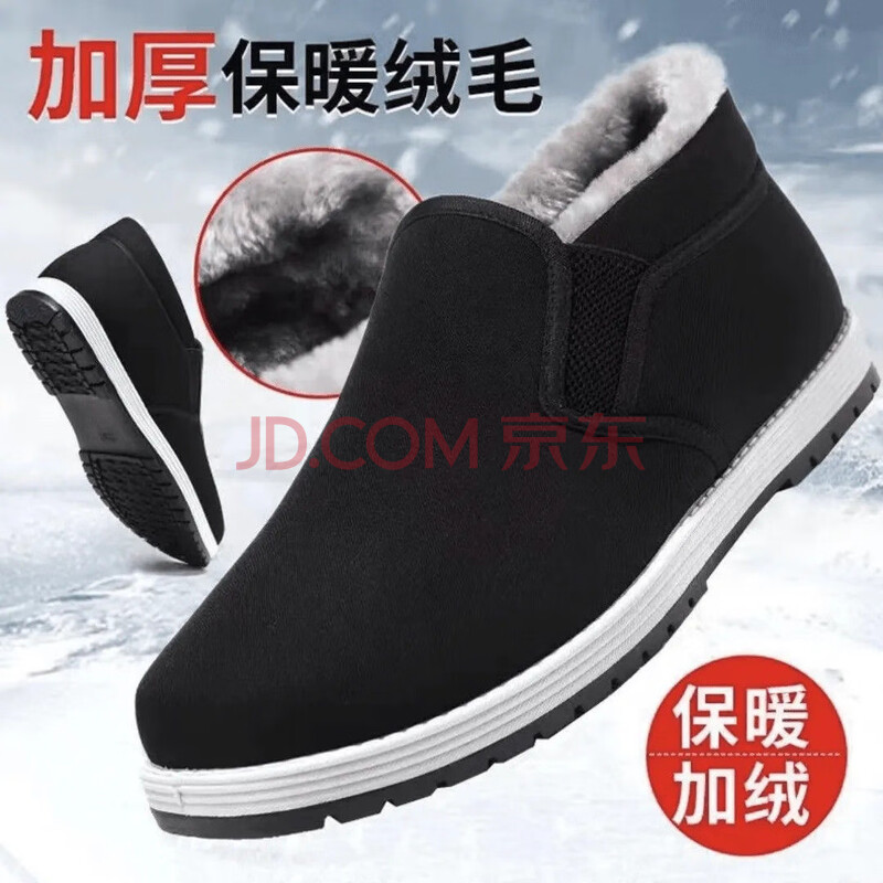 冬季保暖老北京棉鞋加绒加厚软底防滑耐磨暖和一脚蹬爸爸鞋tb 黑色(29.9元)