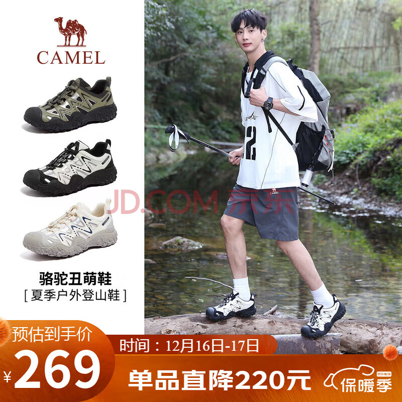 骆驼(CAMEL)溯溪鞋男撞色拼接绑带户外鞋 L24S076620M 米白/黑/(269元)