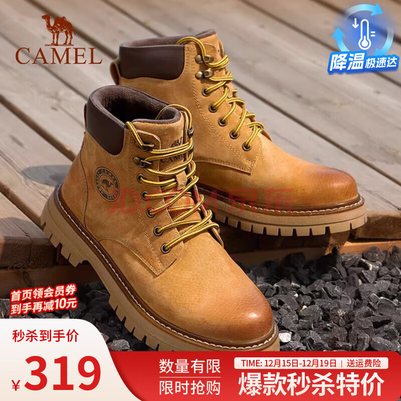 骆驼(CAMEL)马丁靴男王俊凯同款工装大黄靴女冬季穿搭通勤金甲户(319元)