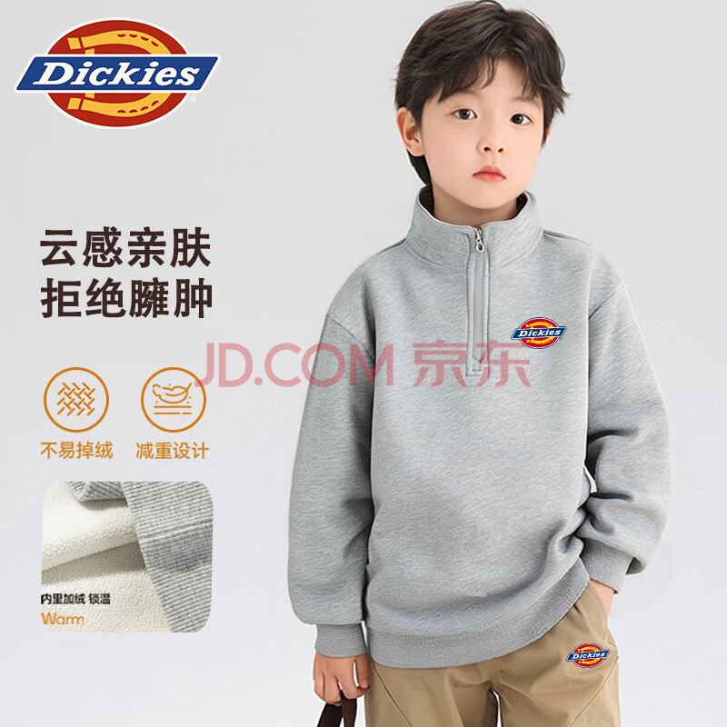 Dickies童装男童加绒卫衣小童冬季加厚衣服儿童半开襟衣服3-12岁男(79.9元)