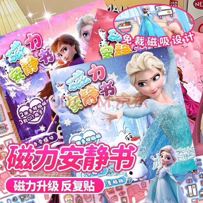亲巴贝圣诞节礼物冰雪公主磁力安静书女孩豪华版免裁剪diy磁贴女孩(35.6元)