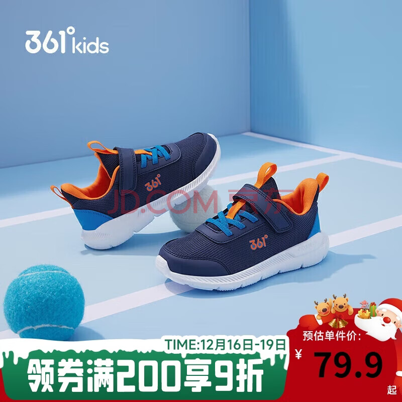 361°儿童运动鞋男女童(3-12岁)防撞鞋头密网休闲跑鞋 蓝 34(79.9元)