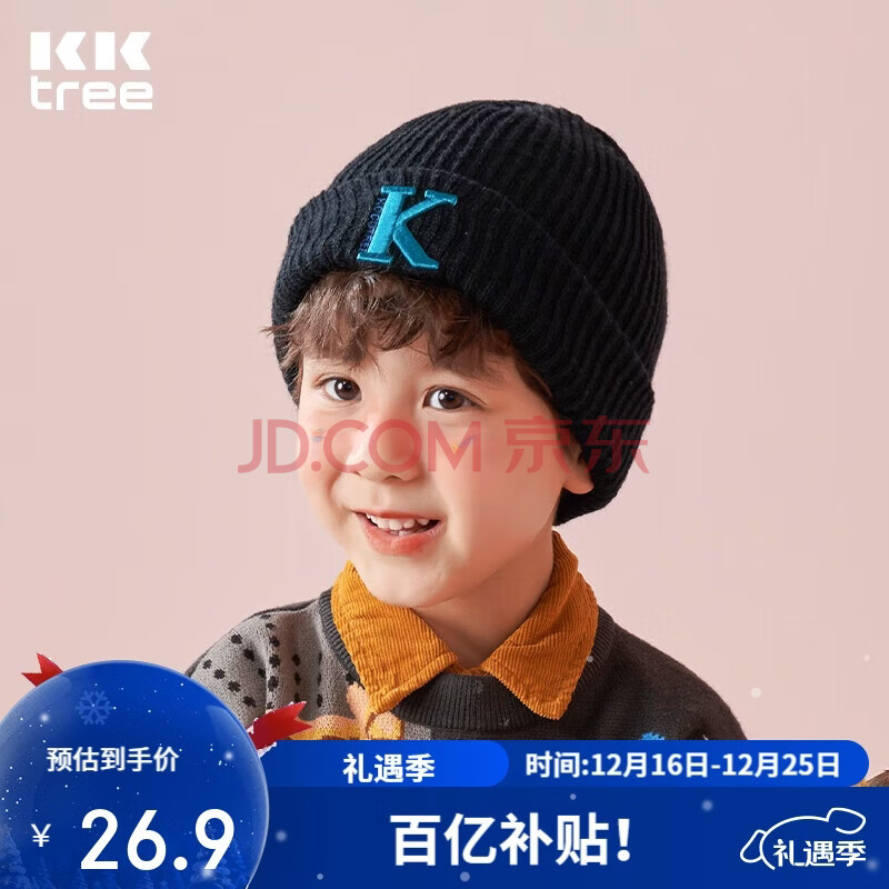 Kocotreekk树儿童帽子男生女童秋冬韩版针织帽宝宝时尚保暖童帽(26.9元)