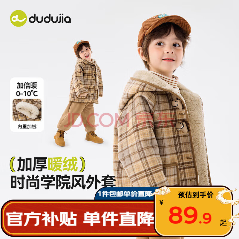 嘟嘟家儿童大衣秋冬宝宝格子外套保暖男童秋装上衣女童衣服冬装 卡(89.1元)