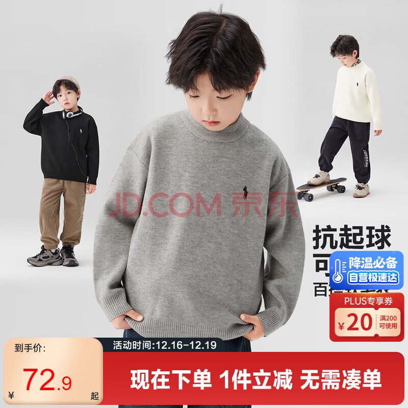 左西男童毛衣纯色儿童加厚秋装2025新款男孩大童秋冬线衣 灰色 160(82.9元)