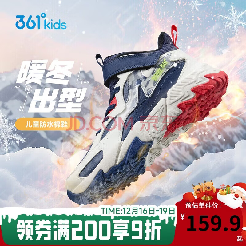 361°儿童棉鞋25冬男女童3-14岁加绒保暖革面户外运动鞋 蓝36(159.9元)