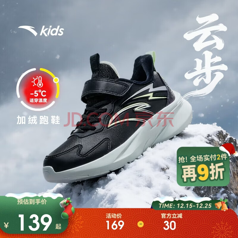 安踏儿童男大童棉鞋2025冬保暖防滑耐磨男童运动加绒鞋A12546927(169元)