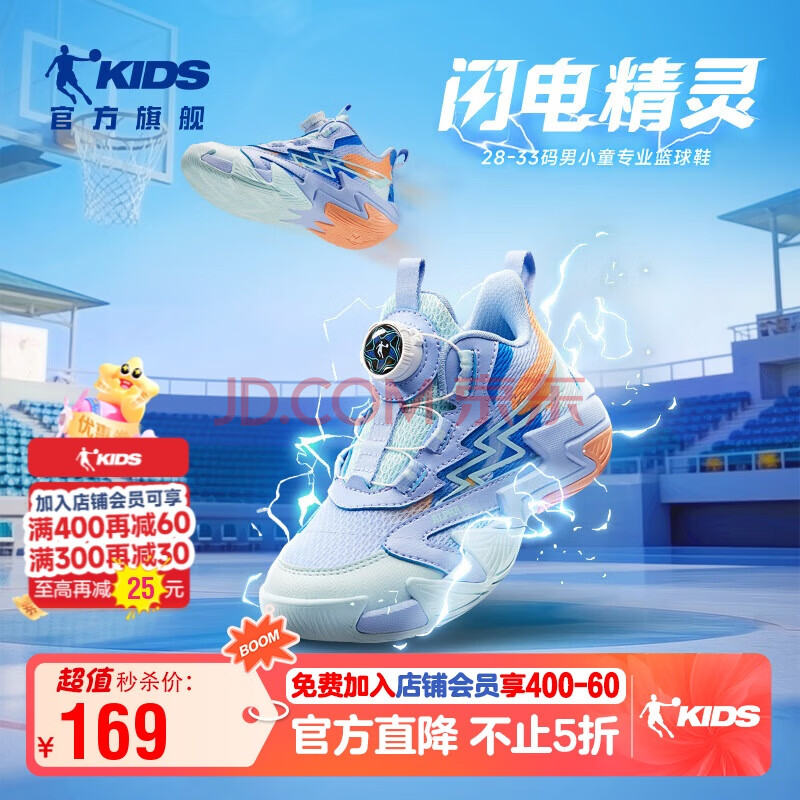 乔丹男童篮球鞋小童春秋季运动鞋旋钮扣儿童鞋子 盐晶蓝/牧舟蓝 32(169元)