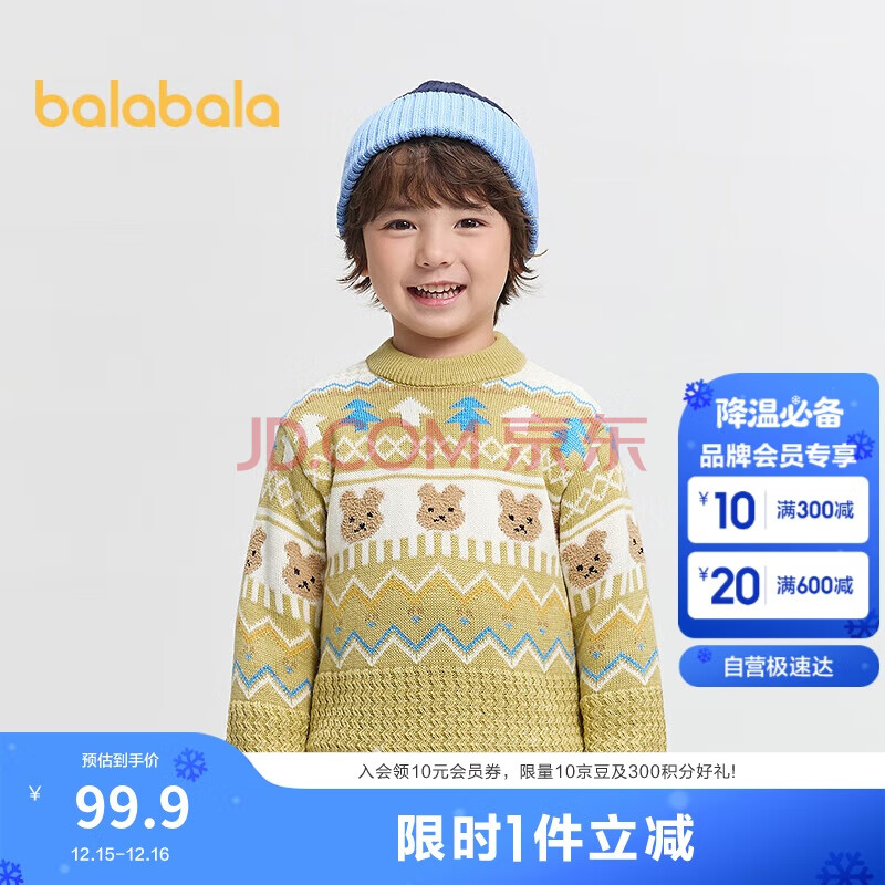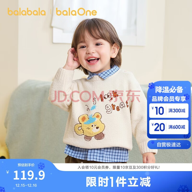 巴拉巴拉童装宝宝毛衣儿童线衫男童女童2025冬装圆领毛衫萌趣20942(159.87元)