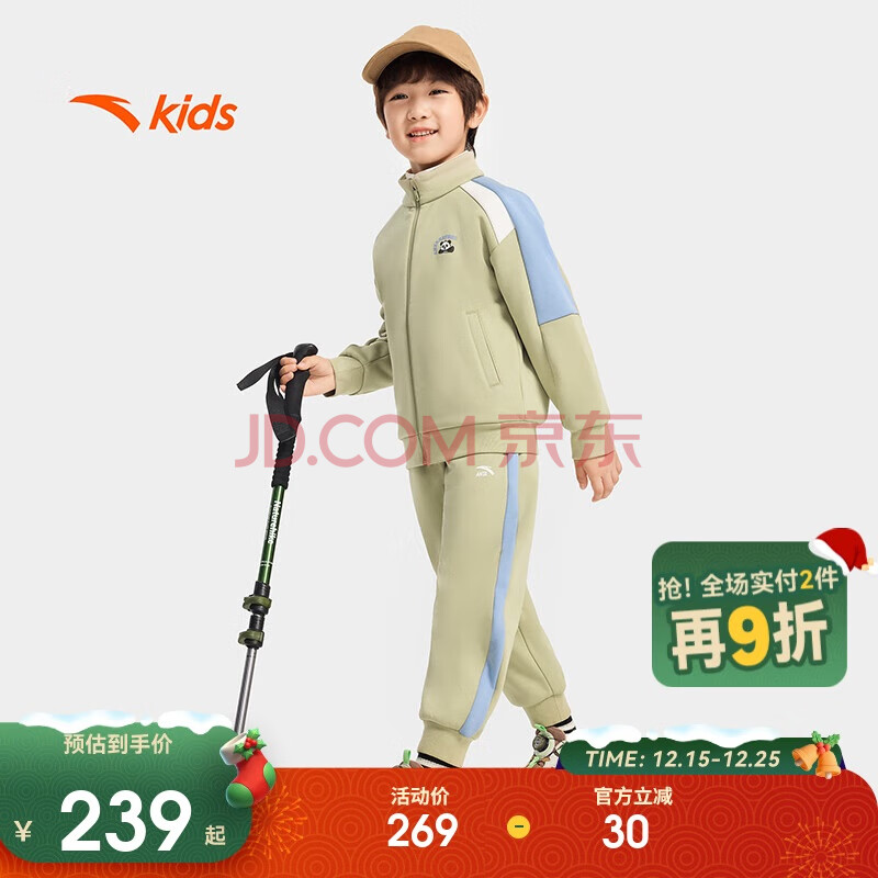 安踏儿童装男童宝宝加绒套装女童2025冬保暖小童两件套潮A72549709(269元)