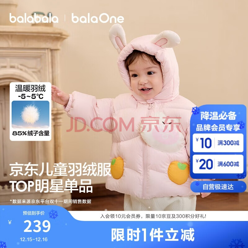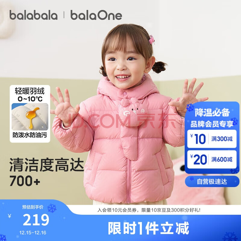 巴拉巴拉balaOne宝宝羽绒服三防男童冬装女童连帽外套2025萌208425(292元)