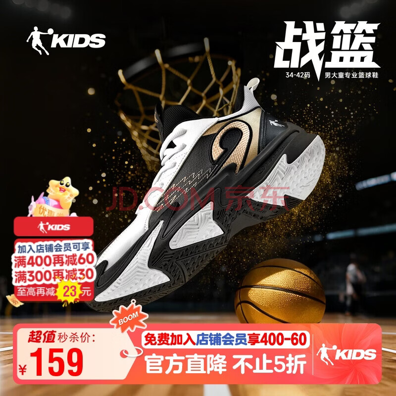 乔丹儿童篮球鞋大童冬季革面运动鞋子男童系带童鞋 黑色/乔丹白 35(159元)