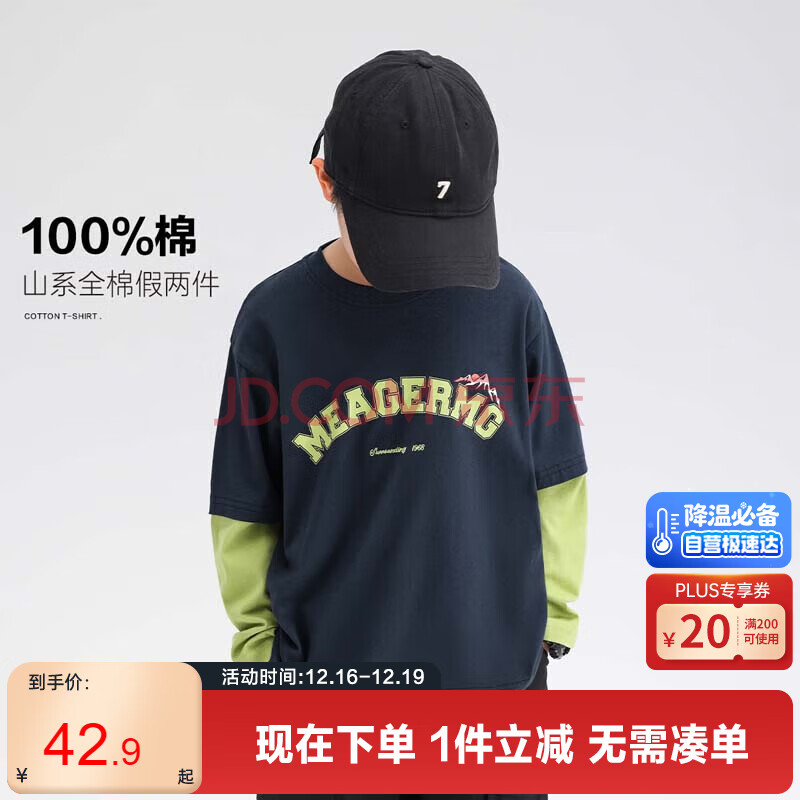 左西男童T恤长袖假两件春秋装上衣2025新款儿童纯棉卫衣 藏青色 15(52.2元)