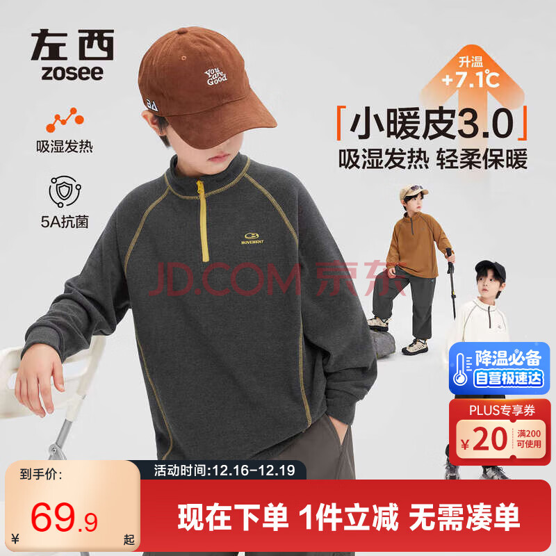 左西男童红色德绒打底衫2025新款儿童长袖T恤秋冬装上衣潮 深灰色 (79.5元)
