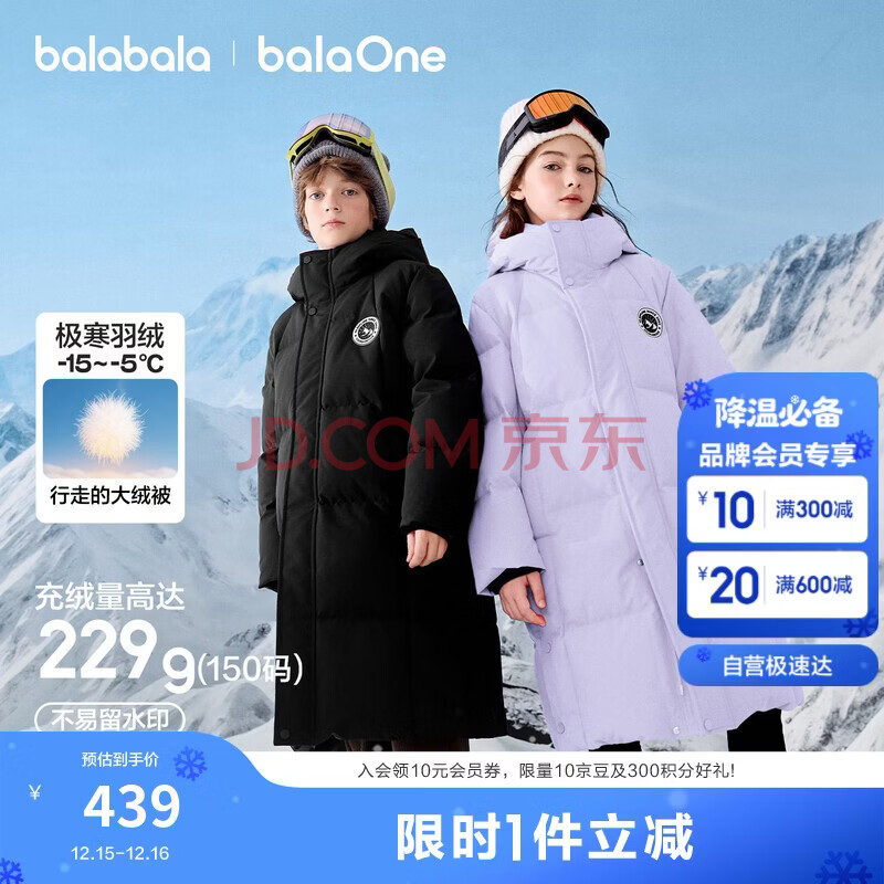 巴拉巴拉童装儿童羽绒服男女童外套长款加厚保暖亲子2025冬季20842(585.34元)