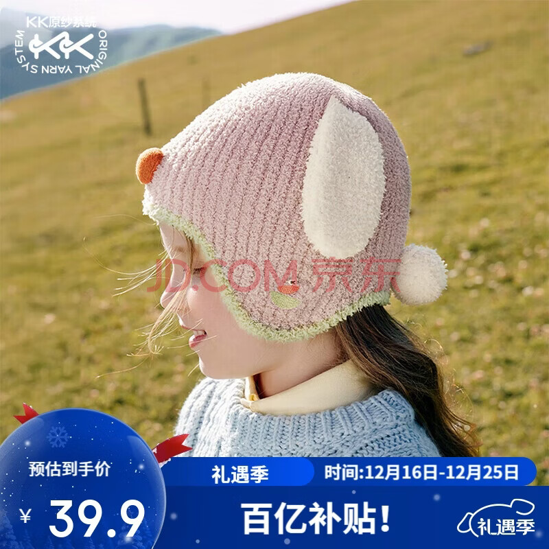 Kocotreekk树儿童帽子保暖防风宝宝冬款软糯毛线帽男女童卡通帽立体(39.9元)