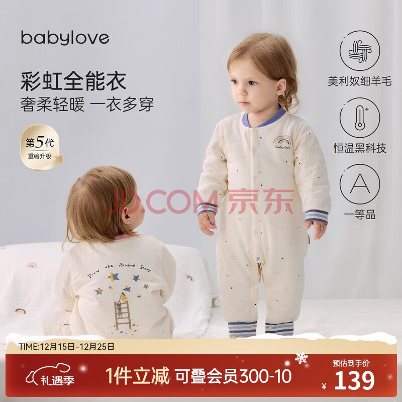 babylove【彩虹全能衣】婴儿连体衣秋冬宝宝恒温薄夹棉羊毛保暖哈衣(169元)