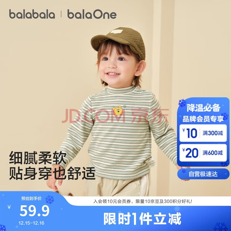 巴拉巴拉balaOne宝宝打底衫男童女童装2025冬季半高领t恤婴儿20942(79.87元)