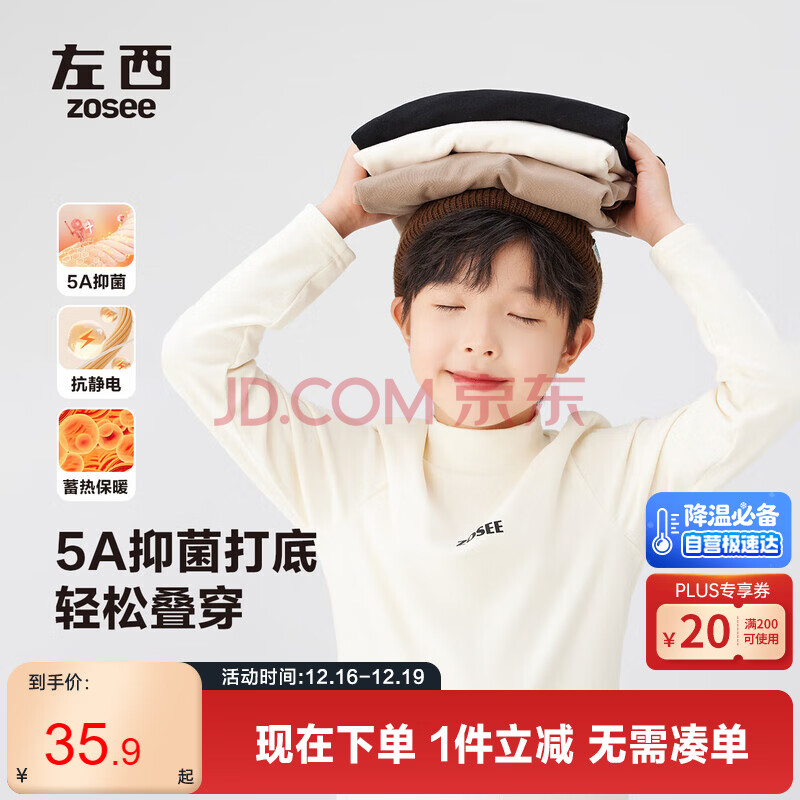 左西男童半高领打底衫秋冬长袖内衣儿童抑菌保暖内搭冬季 米白 130(40.8元)
