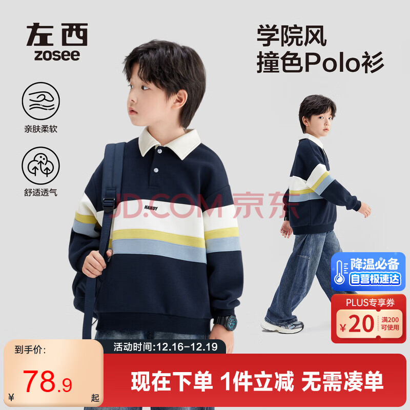 左西童装男童Polo衫卫衣2025新款潮儿童条纹撞色套头衫潮 藏青色 1(89.7元)