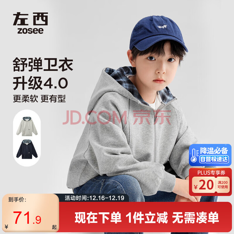 左西童装男童卫衣2025新款外套连帽儿童开衫大童休闲上衣 灰色 150(87.4元)