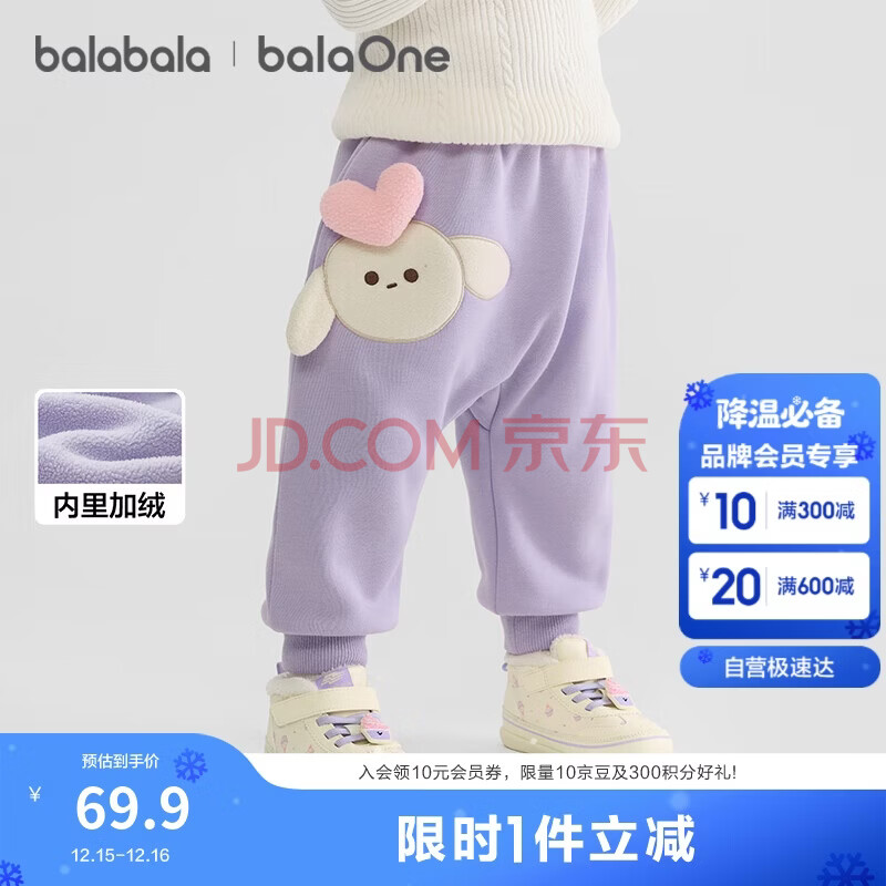 巴拉巴拉宝宝裤子男童长裤秋冬女童加绒裤婴儿pp裤外穿萌(93.2元)