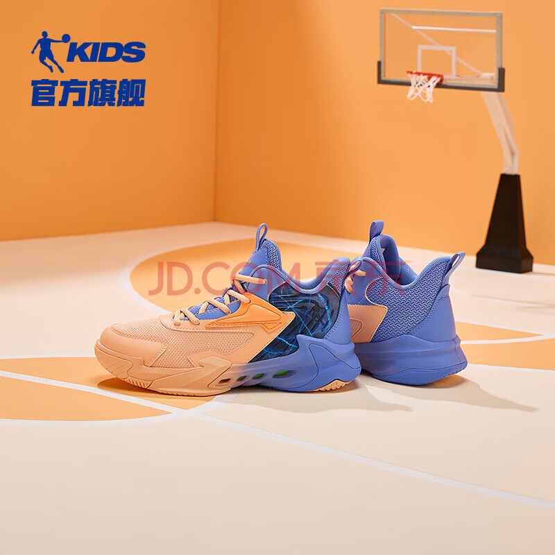 乔丹 大童篮球鞋男童中帮缓震运动儿童鞋防滑童鞋 微光橘/冰月蓝 3(129元)