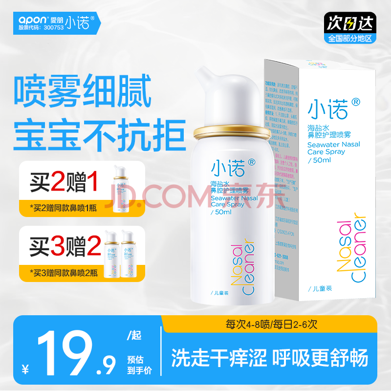 小诺生理洗鼻器鼻炎洗鼻器喷雾盐水儿童洗鼻盐水鼻腔喷雾器喷雾洗鼻(19.9元)