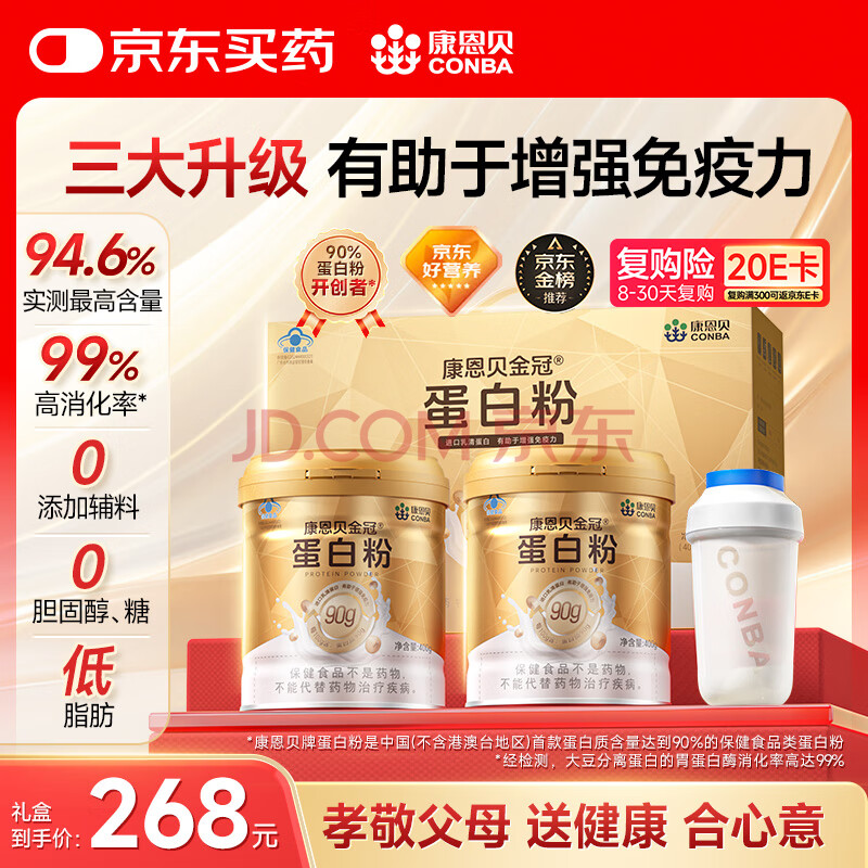 康恩贝金冠蛋白粉800g礼盒 乳清蛋白成人有助于增强免疫力双蛋白90(309元)