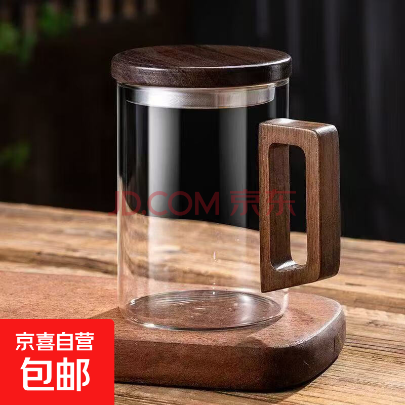 高颜值茶杯茶水分离高档玻璃泡茶杯水杯中式商务杯胡桃把手办公杯 (10.99元)