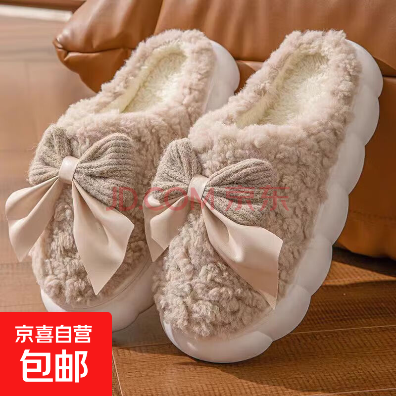 活动款--蝴蝶结拖鞋女士秋冬季冬季居家防滑室内保暖加绒厚底家用 (10.99元)