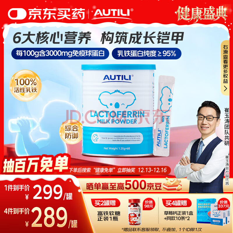 AUTILI澳特力【崔玉涛团队亲研】乳铁蛋白大蓝罐儿童免疫球蛋白粉6(514元)