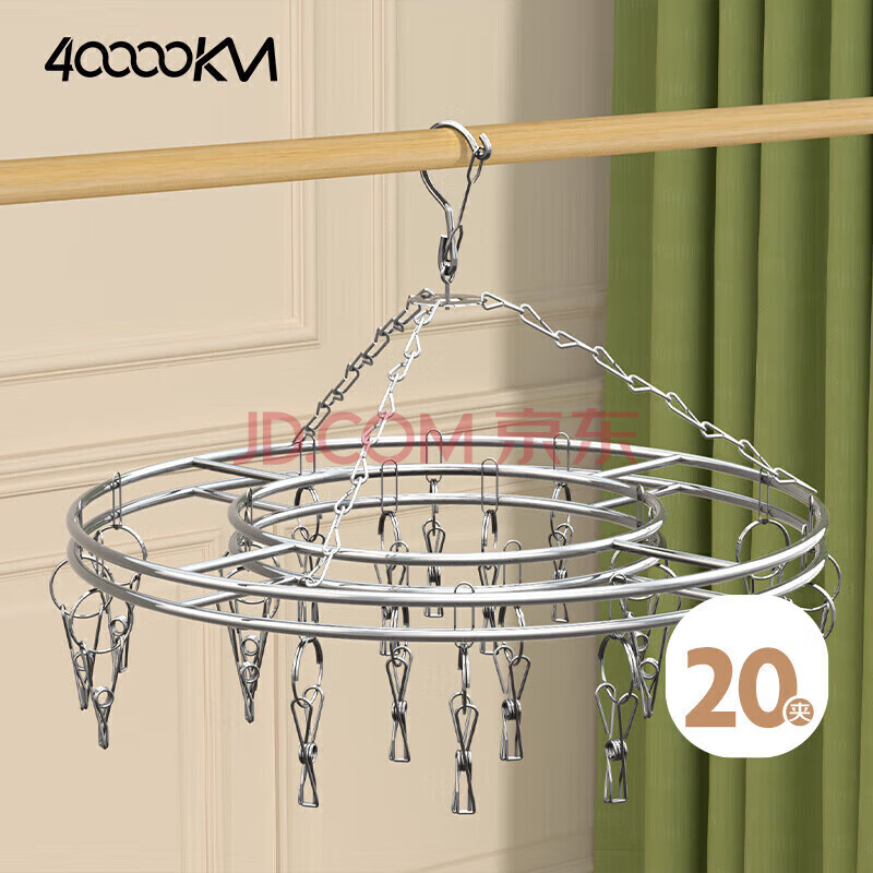 四万公里 晾衣夹 衣架 晾衣架 多功能袜子夹子 不锈钢内衣架 衣挂(15.8元)