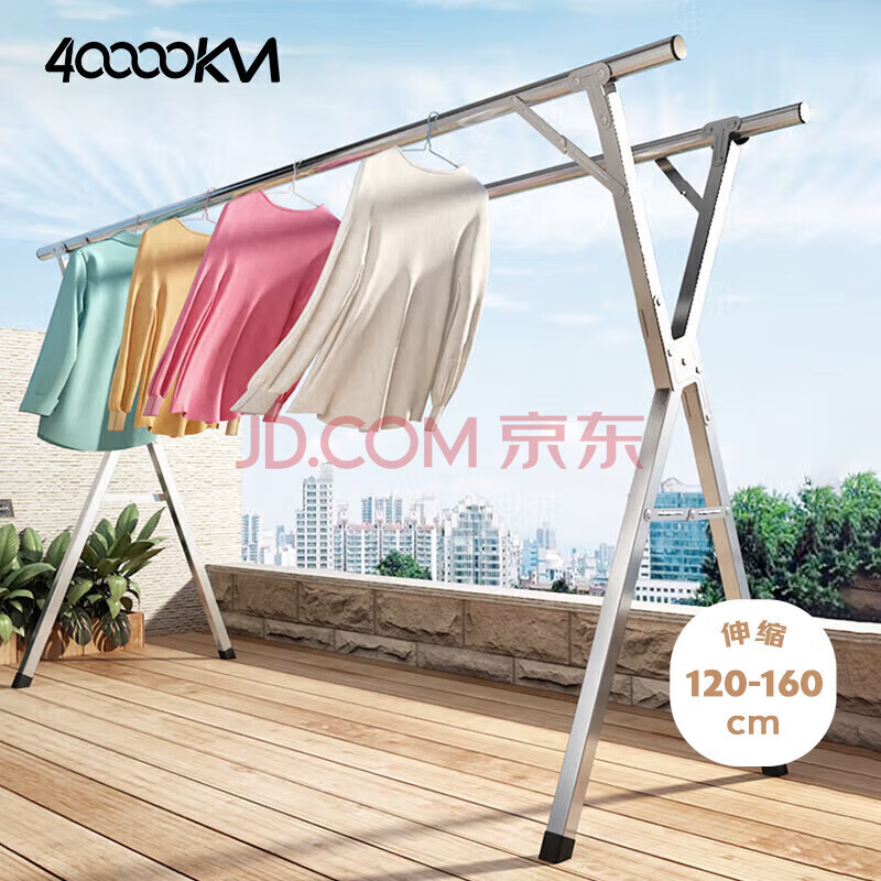 四万公里折叠晾衣架落地伸缩杆式室内外阳台落地挂衣服碳钢晾晒被子(42.24元)