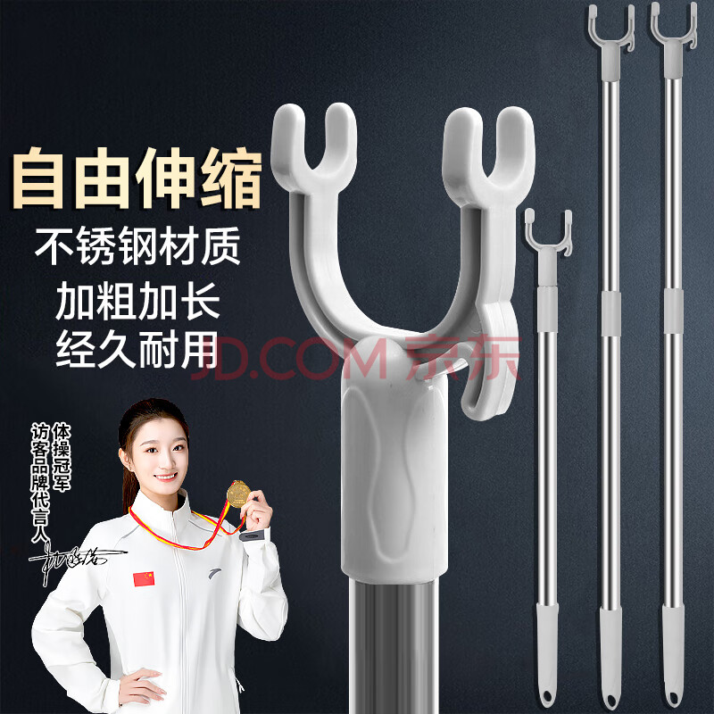 访客 晾衣杆 取衣可伸缩调节撑衣衣架【加厚】不锈钢衣叉挑衣杆时尚(12.5元)