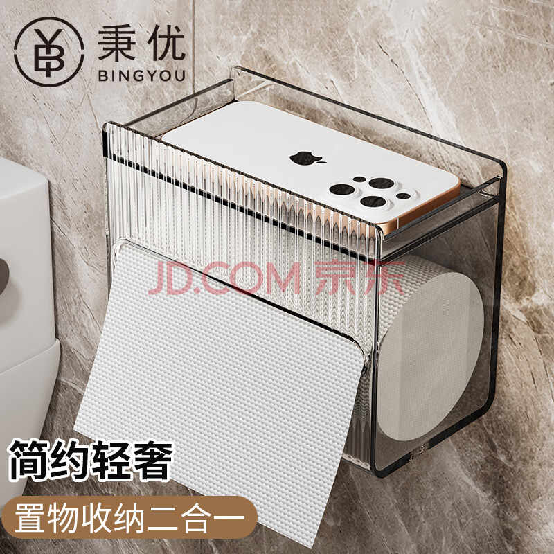 秉优 卫生间纸巾盒 浴室厕所透明免打孔壁挂式客厅置物架卷纸盒抽纸(10.9元)
