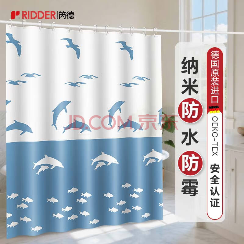 RIDDER 德国进口浴帘防水不霉浴室卫生间隔断洗澡淋浴动感海豚180*(86.53元)