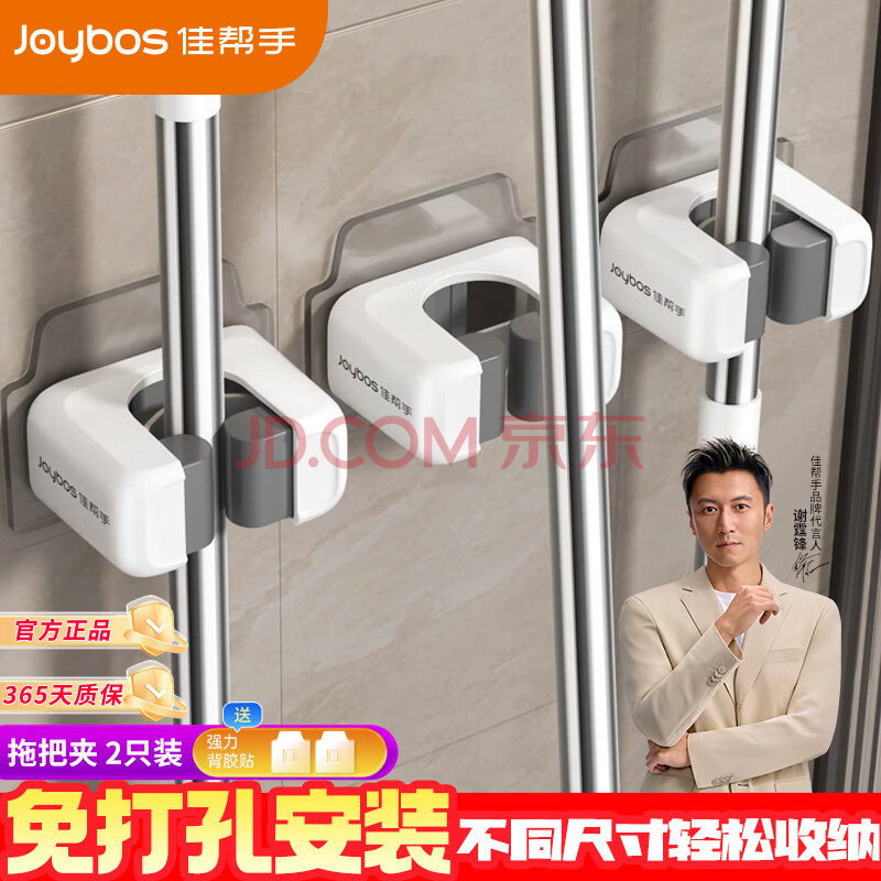 佳帮手拖把壁挂夹免打孔挂钩卫生间浴室墙上扫把收纳置物架拖把夹2(10.71元)