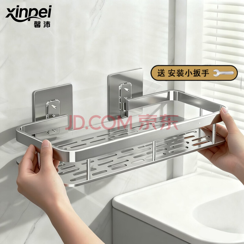 馨沛太空铝方形浴室置物架免打孔卫生间厕所洗漱台收纳壁挂厨房储物(14.8元)