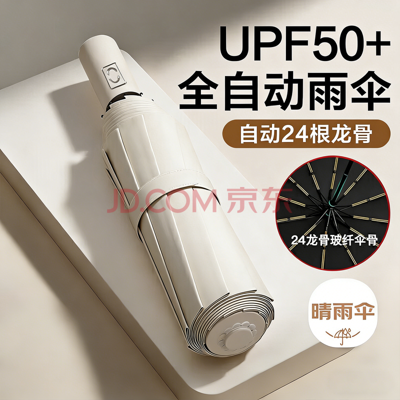 八海鸟24骨雨伞全自动晴雨两用伞加固三折遮阳防晒女防紫外线大号便(26.8元)