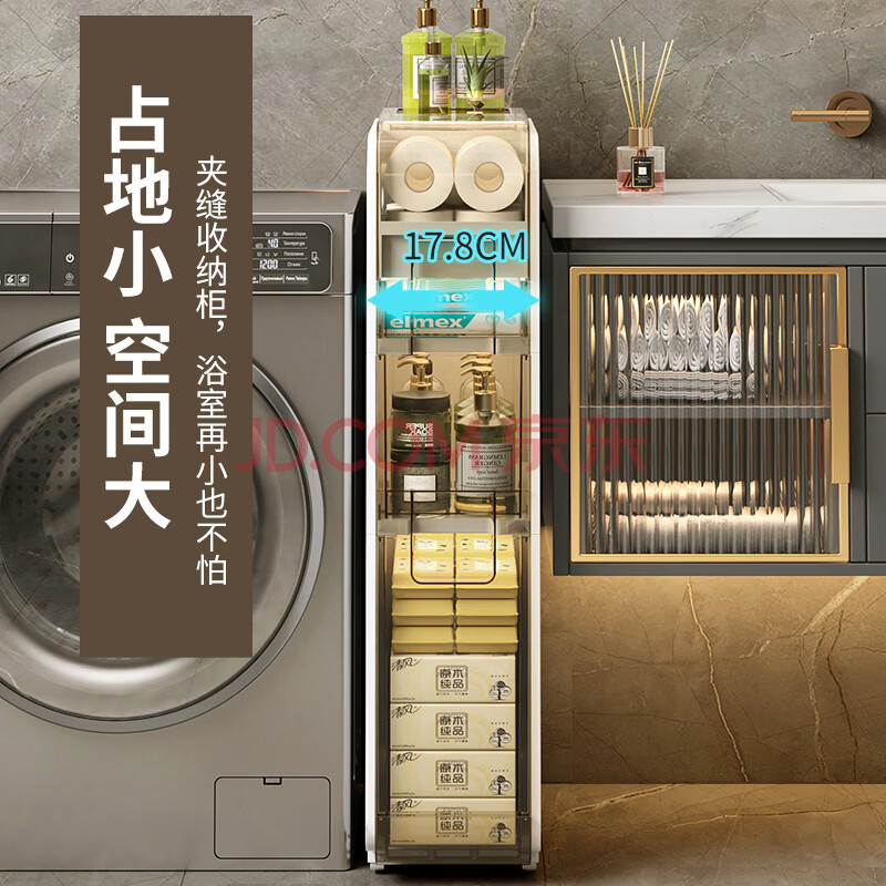 JEKO&JEKO卫生间置物架夹缝收纳柜浴室厕所洗手间落地置物柜18cm宽(219.12元)