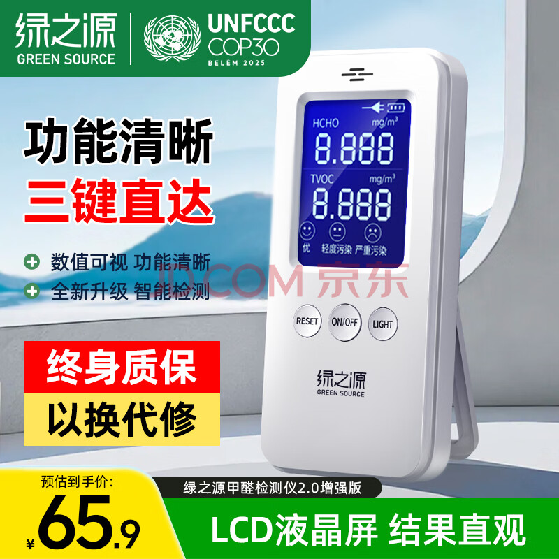 绿之源甲醛检测仪2.0增强版室内空气质量检测仪测甲醛仪器家用测试(65.9元)
